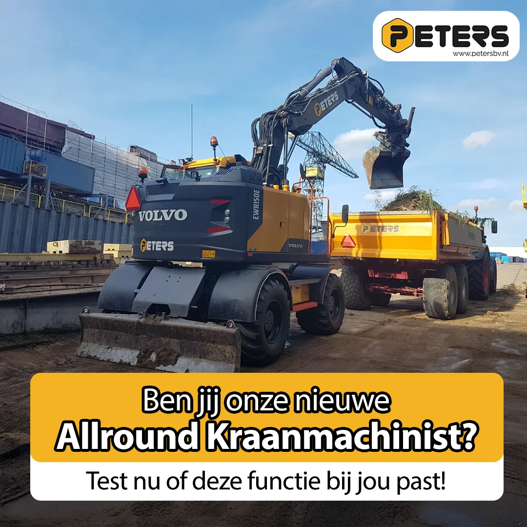 Peters B.V. is al jarenlang actief als betrouwbare partner in groen, grond- en cultuurtechniek. Vanuit Herwen (Gelderland) werken we aan uiteenlopende projecten in de regio én daarbuiten. Als allround kraanmachinist krijg je de kans om jouw ervaring en skills in te zetten op onze eigen projecten en bij collega-aannemers. Geen dag is hetzelfde: van onderhoud tot uitvoering, jij staat centraal in ons team van vakspecialisten.